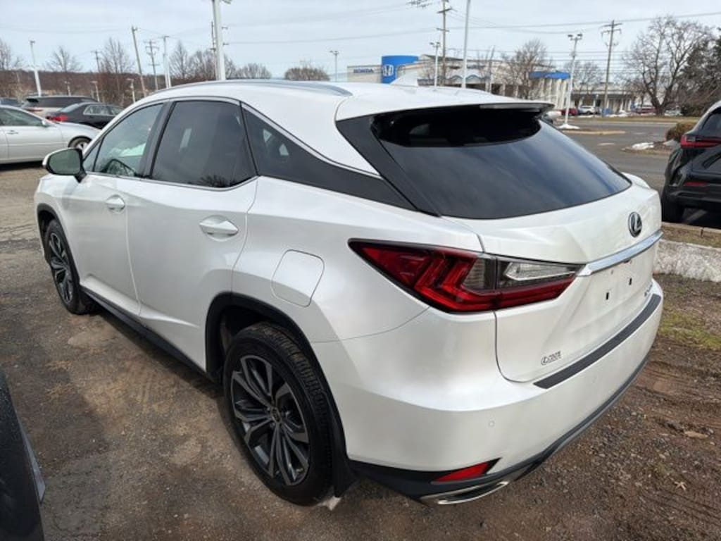 2022 Lexus RX 350 2022 Lexus RX 350 AWD 8-Speed Automatic 3.5L V6 DOHC 24V Thompson Lexus is pleased to offer you a True Market Priced Vehicle. This 2022 Lexus RX 350 comes equipped with notable features like AWD and Black w/Semi-Aniline Leather Seat Trim and more. Discover the exceptional value this vehicle provides: Premium Package, L/Certified Certified, AWD, Black w/Semi-Aniline Leather Seat Trim, 12.3" Navigation System, 18" x 8" Aluminum Wheels, 3.33 Axle Ratio, 4-Wheel Disc Brakes, 9 Speakers, ABS brakes, Air Conditioning, All-Weather Floor Liners w/Cargo Tray, Alloy wheels, AM/FM radio: SiriusXM, AM/FM/CD Radio, Anti-whiplash front head restraints, Apple CarPlay/Android Auto, Auto High-beam Headlights, Auto Recirculation Air Conditioner, Auto-dimming door mirrors, Auto-dimming Rear-View mirror, Automatic temperature control, Brake assist, Bumpers: body-color, CD player, Compass, Delay-off headlights, Door Edge Guard, Driver door bin, Driver vanity mirror, Dual front impact airbags, Dual front side impact airbags, Electronic Stability Control, Emergency communication system, Exterior Parking Camera Rear, Four wheel independent suspension, Front anti-roll bar, Front Bucket Seats, Front Center Armrest, Front dual zone A/C, Front reading lights, Fully automatic headlights, Garage door transmitter: HomeLink, Genuine wood console insert, Genuine wood door panel insert, Heated & Ventilated Front Seats, Heated door mirrors, Heated Leather Steering Wheel, Illuminated entry, Intuitive Parking Assist & Rr Cross Traffic Alert, Knee airbag, Leather Shift Knob, LED Fog Lamps, Low tire pressure warning, Mudguards, NuLuxe Seat Trim, Occupant sensing airbag, Outside temperature display, Overhead airbag, Overhead console, Panic alarm, Panoramic Moonroof, Passenger door bin, Passenger vanity mirror, Power door mirrors, Power driver seat, Power Liftgate, Power passenger seat, Power steering, Power windows, Radio data system, Rain sensing wipers, Rear anti-roll bar, Rear reading lights, Rear seat center armrest, Rear side impact airbag, Rear window defroster, Rear window wiper, Remote keyless entry, Security system, Speed control, Speed-sensing steering, Split folding rear seat, Spoiler, Steering wheel mounted audio controls, Tachometer, Telescoping steering wheel, Tilt steering wheel, Touch-Free Power Rear Door w/Kick Sensor, Traction control, Trip computer, Turn signal indicator mirrors, Variably intermittent wipers