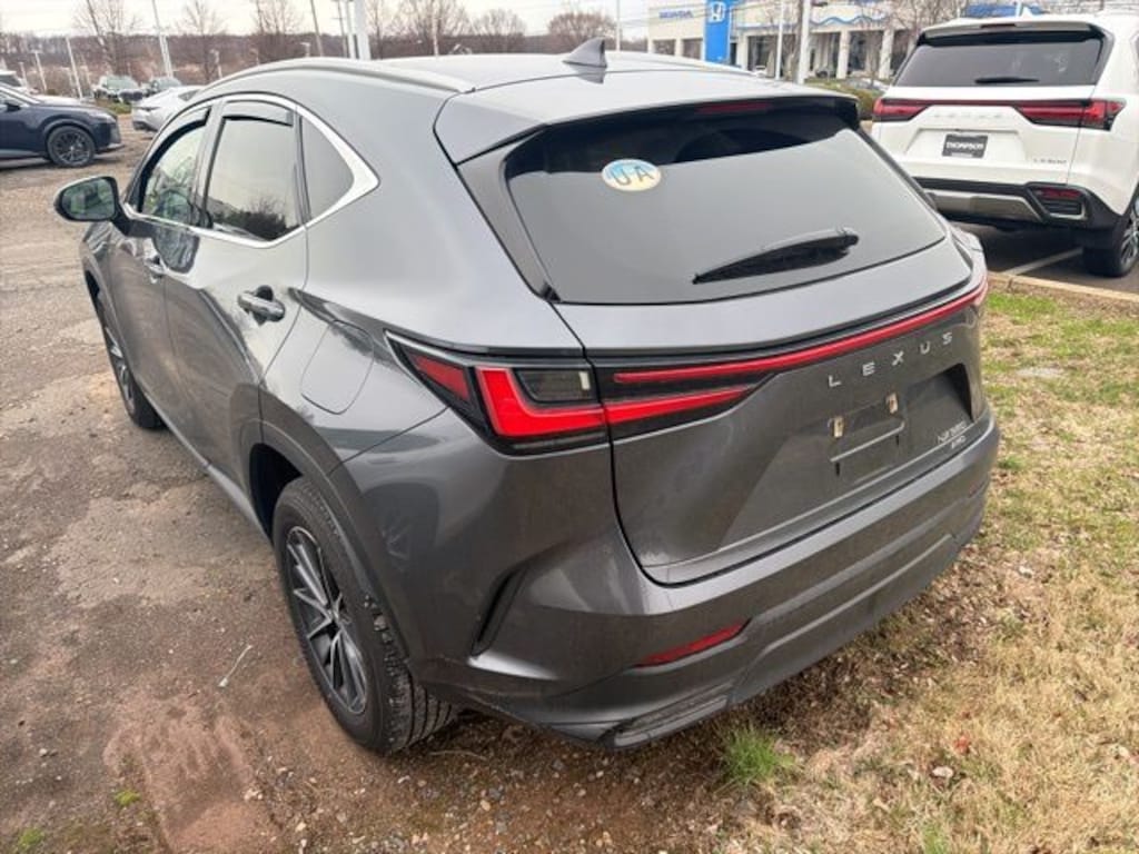 2025 Lexus NX 350 Base 2025 Lexus NX 350 Base AWD 8-Speed Automatic 2.4L I4 DOHC 16V Thompson Lexus is pleased to offer you a True Market Priced Vehicle. This 2025 Lexus NX 350 Base comes equipped with notable features like and more. Discover the exceptional value this vehicle provides: Accessory Package (2T) (All-Weather Cargo Mat and All-Weather Floor Liners), Cold Area Package (Heated Leather-Trimmed Steering Wheel and Windshield Wiper De-Icer), L/Certified Certified, 10 Speakers, 4-Wheel Disc Brakes, ABS brakes, Air Conditioning, Alloy wheels, AM/FM radio: SiriusXM, Auto High-beam Headlights, Auto-dimming door mirrors, Auto-dimming Rear-View mirror, Automatic temperature control, Brake assist, Bumpers: body-color, Cargo Net, Delay-off headlights, Driver door bin, Driver vanity mirror, Dual front impact airbags, Dual front side impact airbags, Electronic Stability Control, Emergency communication system: Safety Connect (up to 10-year trial subscription included), Exterior Parking Camera Rear, Four wheel independent suspension, Front anti-roll bar, Front Bucket Seats, Front Center Armrest, Front dual zone A/C, Front fog lights, Front reading lights, Fully automatic headlights, Garage door transmitter: HomeLink, Heated door mirrors, Heated Front Bucket Seats, Heated front seats, Illuminated entry, Knee airbag, Leather Shift Knob, Leather steering wheel, Low tire pressure warning, Navigation system: Drive Connect Cloud Navigation (subscription required), NuLuxe Seat Trim, Occupant sensing airbag, Outside temperature display, Overhead airbag, Overhead console, Panic alarm, Passenger door bin, Passenger vanity mirror, Power door mirrors, Power driver seat, Power Liftgate, Power passenger seat, Power steering, Power Tilt & Slide Moonroof, Power windows, Radio data system, Radio: 10-Speaker Lexus Premium Sound, Rain sensing wipers, Rear anti-roll bar, Rear reading lights, Rear seat center armrest, Rear window defroster, Rear window wiper, Remote keyless entry, Security system, Speed control, Speed-sensing steering, Speed-Sensitive Wipers, Split folding rear seat, Spoiler, Steering wheel mounted audio controls, Tachometer, Telescoping steering wheel, Tilt steering wheel, Traction control, Trip computer, Turn signal indicator mirrors, Variably intermittent wipers, Wheel Locks, Wheels: 18" Alloy w/Dark Gray Met & Machined Finish, Wireless Apple CarPlay/Wireless Android Auto, and Wireless Phone Charger.