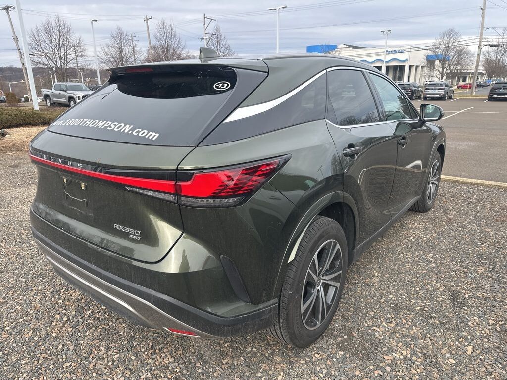 2025 Lexus RX 350 Premium 2025 Lexus RX 350 Premium AWD 8-Speed Automatic 2.4L I4 Turbo Thompson Lexus is pleased to offer you a True Market Priced Vehicle. This 2025 Lexus RX 350 Premium comes equipped with notable features like AWD and Birch w/Black Open Pore w/Leather Seat Trim and more. Discover the exceptional value this vehicle provides: L/Certified Certified, AWD, Birch w/Black Open Pore w/Leather Seat Trim, 12 Speakers, 19" 5-Spoke Alloy Wheels, 4-Wheel Disc Brakes, 8-Way Power Driver & Front Passenger Seat Adjusters, ABS brakes, Air Conditioning, Alloy wheels, AM/FM radio: SiriusXM, Anti-whiplash front head restraints, Auto High-beam Headlights, Auto tilt-away steering wheel, Auto-dimming door mirrors, Auto-dimming Rear-View mirror, Automatic temperature control, Brake assist, Bumpers: body-color, Compass, Delay-off headlights, Driver door bin, Driver vanity mirror, Dual front impact airbags, Dual front side impact airbags, Electronic Stability Control, Emergency communication system: Safety Connect (10-year trial), Exterior Parking Camera Rear, Four wheel independent suspension, Front anti-roll bar, Front Bucket Seats, Front Center Armrest, Front dual zone A/C, Front fog lights, Front reading lights, Fully automatic headlights, Garage door transmitter: HomeLink, Genuine wood console insert, Heated & Ventilated Front Bucket Seats, Heated door mirrors, Heated front seats, Heated steering wheel, Illuminated entry, Leather Shift Knob, Leather steering wheel, Low tire pressure warning, Memory seat, Navigation System, NuLuxe Seat Trim, Occupant sensing airbag, Outside temperature display, Overhead airbag, Overhead console, Panic alarm, Passenger door bin, Passenger vanity mirror, Power door mirrors, Power driver seat, Power Liftgate, Power moonroof, Power passenger seat, Power steering, Power windows, Radio data system, Radio: Lexus Interface w/9.8" HD Touchscreen Display, Rain sensing wipers, Rear air conditioning, Rear anti-roll bar, Rear reading lights, Rear seat center armrest, Rear side impact airbag, Rear window defroster, Rear window wiper, Remote keyless entry, Security system, Speed control, Speed-sensing steering, Split folding rear seat, Spoiler, Steering wheel memory, Steering wheel mounted audio controls, Tachometer, Telescoping steering wheel, Tilt steering wheel, Traction control, Trip computer, Turn signal indicator mirrors, Variably intermittent wipers, Ventilated front