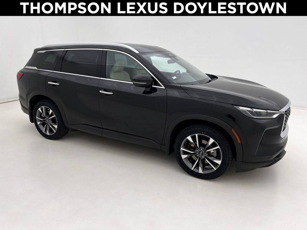 2024 INFINITI QX60 LUXE 2024 INFINITI QX60 LUXE AWD 9-Speed Automatic 3.5L V6 DOHC 24V Thompson Lexus is pleased to offer you a True Market Priced Vehicle. This 2024 INFINITI QX60 LUXE comes equipped with notable features like and more. Discover the exceptional value this vehicle provides: 3rd row seats: bench, 4-Wheel Disc Brakes, 4.33 Axle Ratio, 9 Speakers, ABS brakes, Air Conditioning, Alloy wheels, AM/FM radio: SiriusXM, Anti-whiplash front head restraints, Apple CarPlay/Android Auto, Auto High-beam Headlights, Auto tilt-away steering wheel, Auto-dimming door mirrors, Auto-dimming Rear-View mirror, Automatic temperature control, Brake assist, Bumpers: body-color, Climate Controlled Front Bucket Seats, Delay-off headlights, Driver door bin, Driver vanity mirror, Dual front impact airbags, Dual front side impact airbags, Electronic Stability Control, Emergency communication system: INFINITI InTouch, Exterior Parking Camera Rear, Four wheel independent suspension, Front anti-roll bar, Front Bucket Seats, Front Center Armrest, Front dual zone A/C, Front reading lights, Fully automatic headlights, Garage door transmitter: HomeLink, Heated door mirrors, Heated front seats, Heated steering wheel, Illuminated entry, Knee airbag, Leather Shift Knob, Leather steering wheel, Leather-Appointed Seating Surfaces, Low tire pressure warning, Memory seat, Navigation system: INFINITI InTouch Navigation, Occupant sensing airbag, Outside temperature display, Overhead airbag, Overhead console, Panic alarm, Passenger door bin, Passenger vanity mirror, Power door mirrors, Power driver seat, Power Liftgate, Power moonroof, Power passenger seat, Power steering, Power windows, Radio data system, Radio: AM/FM Audio System, Rain sensing wipers, Rear air conditioning, Rear anti-roll bar, Rear reading lights, Rear seat center armrest, Rear side impact airbag, Rear window defroster, Rear window wiper, Reclining 3rd row seat, Remote keyless entry, Security system, Speed control, Speed-sensing steering, Speed-Sensitive Wipers, Splash Guards (Set of 4), Split folding rear seat, Spoiler, Steering wheel memory, Steering wheel mounted audio controls, Tachometer, Telescoping steering wheel, Tilt steering wheel, Traction control, Trip computer, Turn signal indicator mirrors, Variably intermittent wipers, Ventilated front seats, and Wheels: 20" x 8J Sporty Machined Aluminum Alloy.