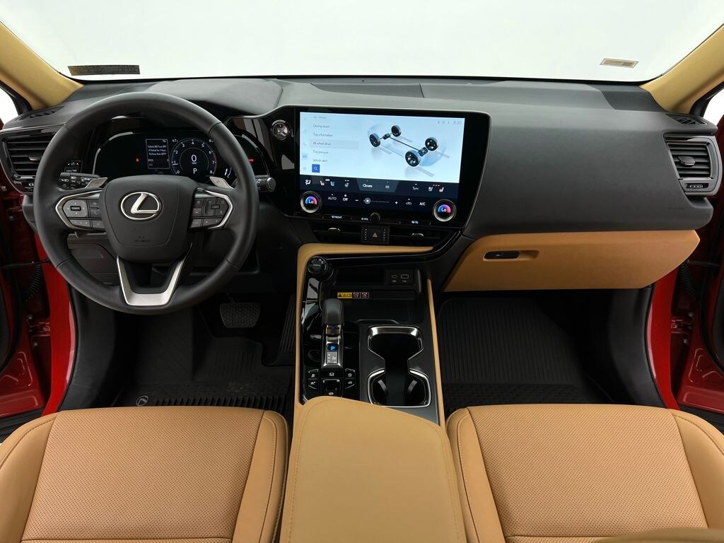 2025 Lexus NX 350 Premium AWD. 2.4L I4 DOHC 16V Engine. 8-Speed Automatic Transmission. Red Line Exterior. Palomino Interior. 21 City MPG. 28 Highway MPG.