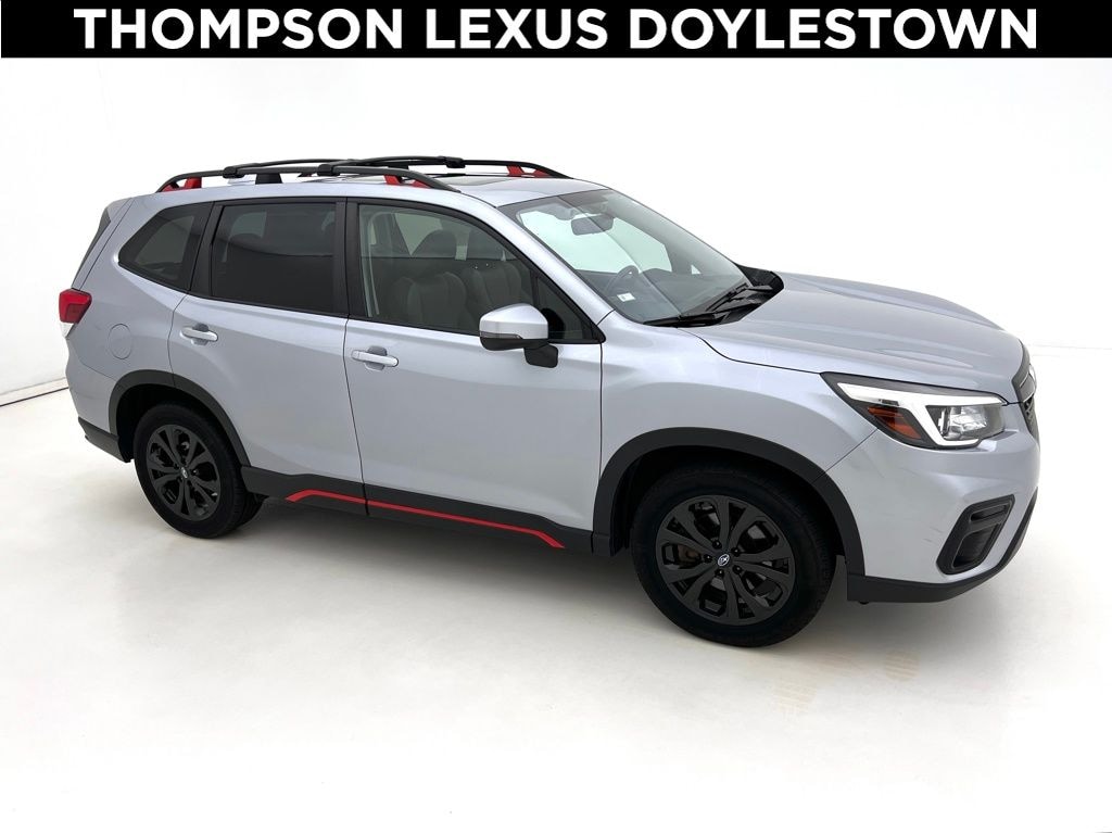 2020 Subaru Forester Sport 2020 Subaru Forester Sport AWD Lineartronic CVT 2.5L 4-Cylinder DOHC 16V VVT Thompson Lexus is pleased to offer you a True Market Priced Vehicle. This 2020 Subaru Forester Sport comes equipped with notable features like and more. Discover the exceptional value this vehicle provides: Audio Sys/Drvr Ast Tech/Rev Auto Brake/Pwr Rr Gate (Blind Spot Detection w/Rear Cross Traffic Alert, harman kardon 576W Amp & Speaker System, Power Rear Gate, Radio: Subaru Starlink 8.0" Multimedia Plus System, and Reverse Automatic Braking System (RAB)), Popular Package #2 (All-Weather Floor Liners, Auto-Dimming Exterior Mirror w/Approach Lighting, Auto-Dimming Mirror w/Compass & HomeLink, Cargo Net, and Rear Bumper Cover), 3.70 Axle Ratio, 4-Wheel Disc Brakes, 6 Speakers, ABS brakes, Air Conditioning, Alloy wheels, AM/FM radio: SiriusXM, Auto High-beam Headlights, Automatic temperature control, Brake assist, Bumpers: body-color, CD player, Driver door bin, Driver vanity mirror, Dual front impact airbags, Dual front side impact airbags, Electronic Stability Control, Emergency communication system: STARLINK Safety and Security (Subscription Required), Exterior Parking Camera Rear, Four wheel independent suspension, Front anti-roll bar, Front Bucket Seats, Front Center Armrest, Front fog lights, Front reading lights, Fully automatic headlights, Heated door mirrors, Heated Front Bucket Seats, Heated front seats, Illuminated entry, Knee airbag, Leather Shift Knob, Low tire pressure warning, Occupant sensing airbag, Outside temperature display, Overhead airbag, Overhead console, Paddle-Shift Control Switches, Panic alarm, Passenger door bin, Passenger vanity mirror, Power door mirrors, Power driver seat, Power moonroof: Panoramic, Power steering, Power windows, Radio data system, Radio: Subaru Starlink 6.5" Multimedia Plus System, Rear anti-roll bar, Rear seat center armrest, Rear window defroster, Rear window wiper, Remote keyless entry, Roof rack: rails only, Security system, Speed control, Speed-sensing steering, Split folding rear seat, Spoiler, Sport Cloth Upholstery, STARLINK/Apple CarPlay/Android Auto, Steering wheel mounted audio controls, Tachometer, Telescoping steering wheel, Tilt steering wheel, Traction control, Trip computer, Turn signal indicator mirrors, Variably intermittent wipers, and Wheels: 18" x 7.0J Black Finish Aluminum Alloy.