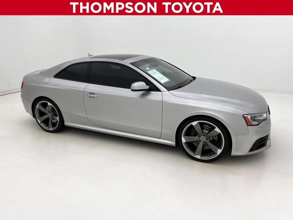 Thompson Toyota is pleased to offer you a True Market Priced Vehicle. This 2014 Audi RS 5 4.2 quattro comes equipped with notable features like: 10 Speakers, 3-Step Heated S Sport-Contoured Front Seats, 4-Wheel Disc Brakes, 9.0J x 19" 10-Spoke Forged RS-Design Wheels, ABS brakes, Air Conditioning, Alloy wheels, AM/FM radio: SiriusXM, Auto-dimming door mirrors, Auto-dimming Rear-View mirror, Automatic temperature control, Brake assist, Bumpers: body-color, CD player, Compass, Delay-off headlights, Driver door bin, Driver vanity mirror, Dual front impact airbags, Dual front side impact airbags, Electronic Stability Control, Fine Nappa Leather Seat Trim, Four wheel independent suspension, Front anti-roll bar, Front Bucket Seats, Front Center Armrest, Front dual zone A/C, Front reading lights, Garage door transmitter: HomeLink, Headlight cleaning, Heated door mirrors, Heated front seats, High intensity discharge headlights: Xenon plus, Illuminated entry, Knee airbag, Leather Shift Knob, Leather steering wheel, Low tire pressure warning, Memory seat, Occupant sensing airbag, Outside temperature display, Overhead airbag, Overhead console, Panic alarm, Passenger door bin, Passenger vanity mirror, Power door mirrors, Power driver seat, Power moonroof, Power passenger seat, Power steering, Power windows, Radio data system, Radio: Audi Concert System w/1CD Player, Rain sensing wipers, Rear air conditioning, Rear anti-roll bar, Rear fog lights, Rear reading lights, Rear seat center armrest, Rear window defroster, Remote keyless entry, Security system, Speed control, Speed-sensing steering, Speed-Sensitive Wipers, Split folding rear seat, Spoiler, Sport steering wheel, Steering wheel mounted audio controls, Tachometer, Telescoping steering wheel, Tilt steering wheel, Traction control, Trip computer, Turn signal indicator mirrors, and Variably intermittent wipers.