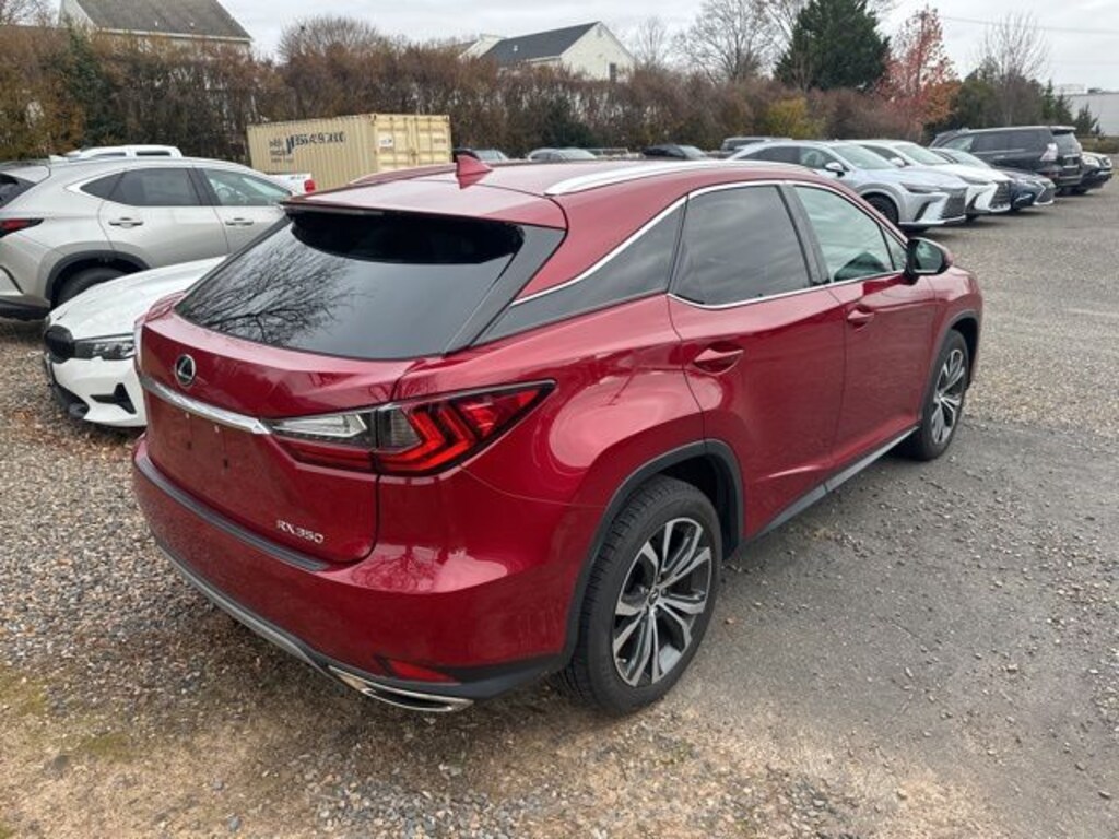 2021 Lexus RX 350 2021 Lexus RX 350 AWD 8-Speed Automatic 3.5L V6 DOHC 24V Thompson Lexus is pleased to offer you a True Market Priced Vehicle. This 2021 Lexus RX 350 comes equipped with notable features like AWD and Black w/NuLuxe Seat Trim and more. Discover the exceptional value this vehicle provides: AWD, Black w/NuLuxe Seat Trim, 18" Aluminum Wheels, 3.329 Axle Ratio, 4-Wheel Disc Brakes, 9 Speakers, ABS brakes, Air Conditioning, Alloy wheels, AM/FM radio: SiriusXM, AM/FM/CD Radio, Anti-whiplash front head restraints, Apple CarPlay/Android Auto, Auto High-beam Headlights, Auto-dimming Rear-View mirror, Automatic temperature control, Brake assist, Bumpers: body-color, CD player, Compass, Delay-off headlights, Driver door bin, Driver vanity mirror, Dual front impact airbags, Dual front side impact airbags, Electronic Stability Control, Emergency communication system, Exterior Parking Camera Rear, Four wheel independent suspension, Front anti-roll bar, Front Bucket Seats, Front Center Armrest, Front dual zone A/C, Front reading lights, Fully automatic headlights, Garage door transmitter: HomeLink, Genuine wood console insert, Genuine wood door panel insert, Heated door mirrors, Illuminated entry, Knee airbag, Leather Shift Knob, Leather steering wheel, Low tire pressure warning, NuLuxe Seat Trim, Occupant sensing airbag, Outside temperature display, Overhead airbag, Overhead console, Panic alarm, Passenger door bin, Passenger vanity mirror, Power door mirrors, Power driver seat, Power Liftgate, Power passenger seat, Power steering, Power windows, Radio data system, Rain sensing wipers, Rear anti-roll bar, Rear reading lights, Rear seat center armrest, Rear side impact airbag, Rear window defroster, Rear window wiper, Remote keyless entry, Security system, Speed control, Speed-sensing steering, Split folding rear seat, Spoiler, Steering wheel mounted audio controls, Tachometer, Telescoping steering wheel, Tilt steering wheel, Traction control, Trip computer, Turn signal indicator mirrors, and Variably intermittent wipers.