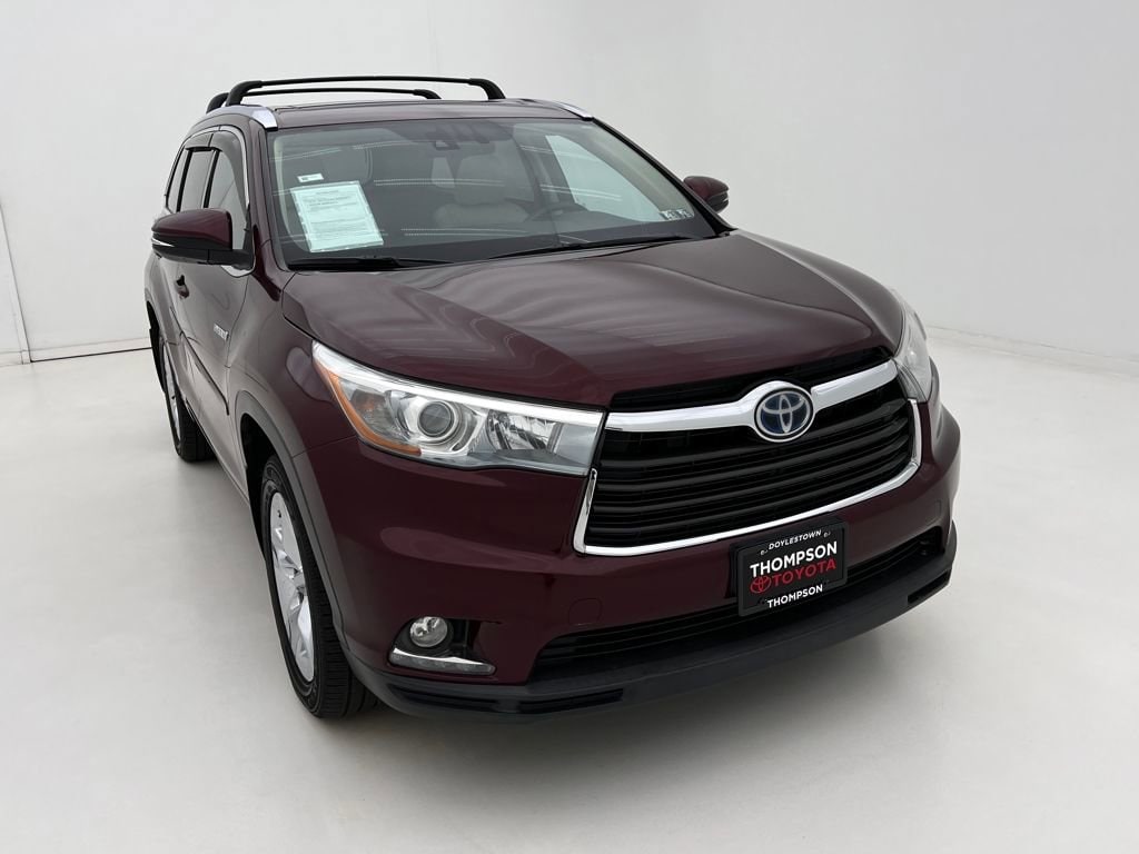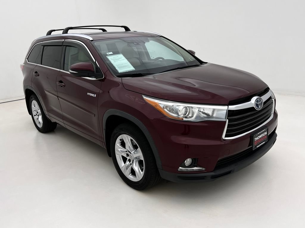 Thompson Toyota is pleased to offer you a True Market Priced Vehicle. This 2015 Toyota Highlander Hybrid Limited comes equipped with notable features like: 3.5L V6 MPI DOHC 24V VVT-i, 12 Speakers, 3.542 Axle Ratio, 3rd row seats: split-bench, 4-Wheel Disc Brakes, ABS brakes, Air Conditioning, Alloy Wheel Locks, Alloy wheels, AM/FM radio: SiriusXM, Anti-whiplash front head restraints, Auto-dimming Rear-View mirror, Automatic High Beams, Automatic temperature control, Brake assist, Bumpers: body-color, Carpet Floor Mats & Carpet Cargo Mat, CD player, Cross Bars, Delay-off headlights, Driver door bin, Driver vanity mirror, Dual front impact airbags, Dual front side impact airbags, Electronic Stability Control, Exterior Parking Camera Rear, First Aid Kit, Four wheel independent suspension, Front anti-roll bar, Front Bucket Seats, Front Center Armrest, Front dual zone A/C, Front fog lights, Front reading lights, Fully automatic headlights, Garage door transmitter: HomeLink, Heated door mirrors, Heated front seats, Heated/Ventilated Front Bucket Seats, Illuminated entry, Knee airbag, Lane Departure Alert, Leather Shift Knob, Low tire pressure warning, Memory seat, Navigation System, Occupant sensing airbag, Outside temperature display, Overhead airbag, Overhead console, Panic alarm, Passenger door bin, Passenger vanity mirror, Perforated Leather Seat Trim, Power door mirrors, Power driver seat, Power Liftgate, Power moonroof, Power passenger seat, Power steering, Power windows, Pre-Collision System w/Dynamic Radar Cruise Ctrl, Radio: Entune Premium JBL Audio w/Nav & App Suite, Rear air conditioning, Rear anti-roll bar, Rear Parking Sensors, Rear reading lights, Rear window defroster, Rear window wiper, Reclining 3rd row seat, Remote keyless entry, Roof rack: rails only, Safety Connect, Security system, Speed control, Speed-sensing steering, Split folding rear seat, Spoiler, Steering wheel mounted audio controls, Telescoping steering wheel, Tilt steering wheel, Traction control, Trip computer, Turn signal indicator mirrors, Variably intermittent wipers, Ventilated front seats, and Wheels: 19" 5-Spoke Chromtec Alloy.