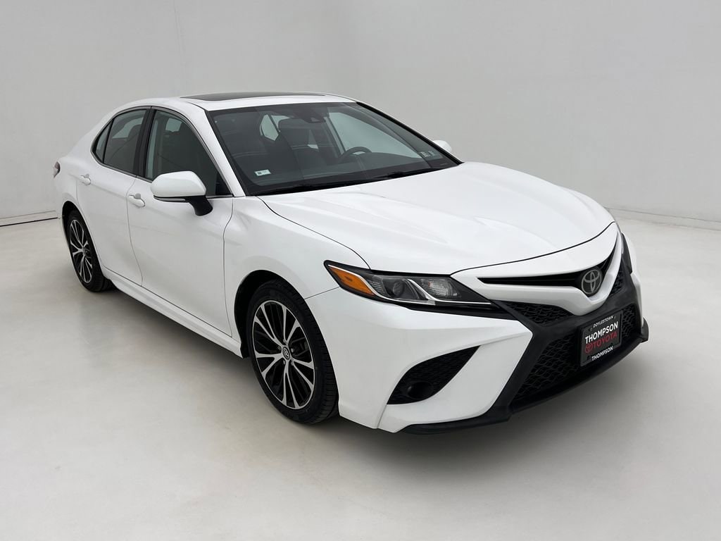 Thompson Toyota is pleased to offer you a True Market Priced Vehicle. This 2020 Toyota Camry SE comes equipped with notable features like: All-Weather Floor Liner Package, Audio Package (Dual Zone Air Conditioning w/Filter & Rear Vents and Radio: AM/FM/HD Audio Plus), Convenience Package (Auto-Dimming Rear-View Mirror, HomeLink, and Smart Key System w/Push Button Start), Black Cloth, 4-Wheel Disc Brakes, 6 Speakers, ABS brakes, Air Conditioning, Alloy Wheel Locks, Alloy wheels, AM/FM radio: SiriusXM, Apple CarPlay/Android Auto, Auto High-beam Headlights, Automatic temperature control, Blind Spot Monitor w/Rear Cross Traffic Alert, Brake assist, Bumpers: body-color, Delay-off headlights, Door Edge Guards, Driver door bin, Driver vanity mirror, Dual front impact airbags, Dual front side impact airbags, Electronic Stability Control, Emergency communication system: Safety Connect with 1-year trial, Exterior Parking Camera Rear, Fabric Seat Trim w/SofTex, Four wheel independent suspension, Front anti-roll bar, Front Bucket Seats, Front Center Armrest, Front reading lights, Front Sport Bucket Seats, Fully automatic headlights, Illuminated entry, Knee airbag, Leather Shift Knob, Low tire pressure warning, Occupant sensing airbag, Outside temperature display, Overhead airbag, Overhead console, Panic alarm, Passenger door bin, Passenger vanity mirror, Power door mirrors, Power driver seat, Power steering, Power Tilt/Slide Moonroof, Power windows, Radio data system, Radio: AM/FM Audio System, Rear anti-roll bar, Rear reading lights, Rear seat center armrest, Rear side impact airbag, Rear window defroster, Remote keyless entry, Security system, Speed control, Speed-sensing steering, Split folding rear seat, Spoiler, Sport steering wheel, Steering wheel mounted audio controls, Tachometer, Telescoping steering wheel, Tilt steering wheel, Traction control, Trip computer, Variably intermittent wipers, and Wheels: 8.0J x 18" Black Machined-Finish Alloy.